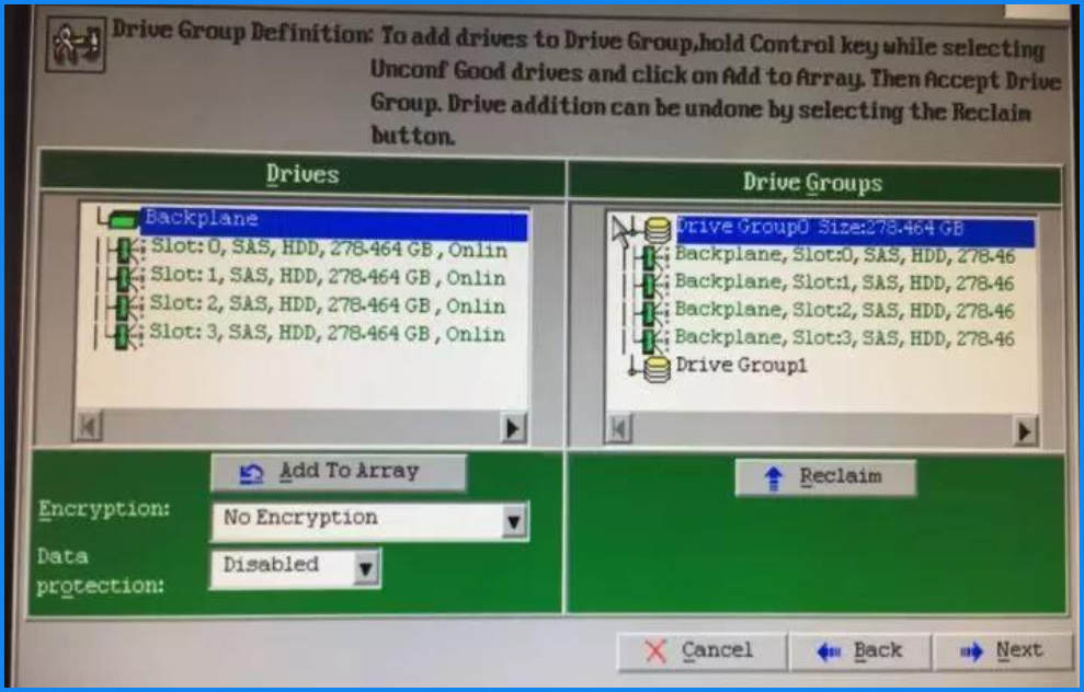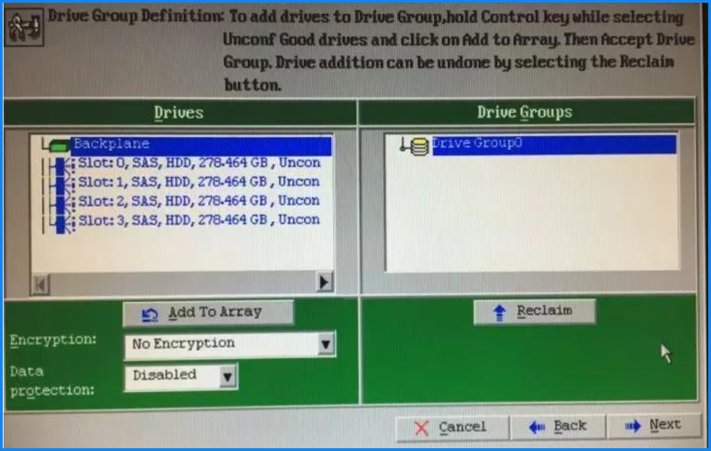 - 如果做多个硬盘组,用来配置阵列,可多配置一组Drive Group。 如果不需要则直接Next进行下一步,此步骤与第七步相同