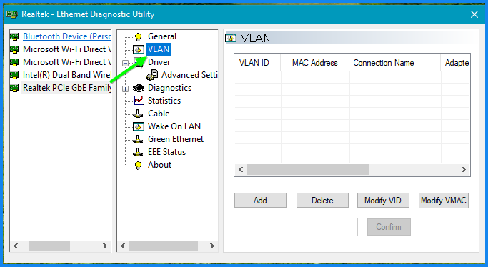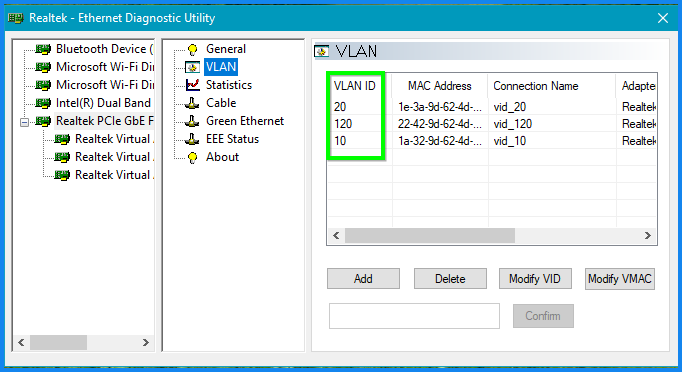 - 如安装Realtek Ethernet Diagnostic Utility后未显示vlan选项,需确保网卡本身支持划分虚拟VLAN,之后更换软件为Version:2.02.12解决